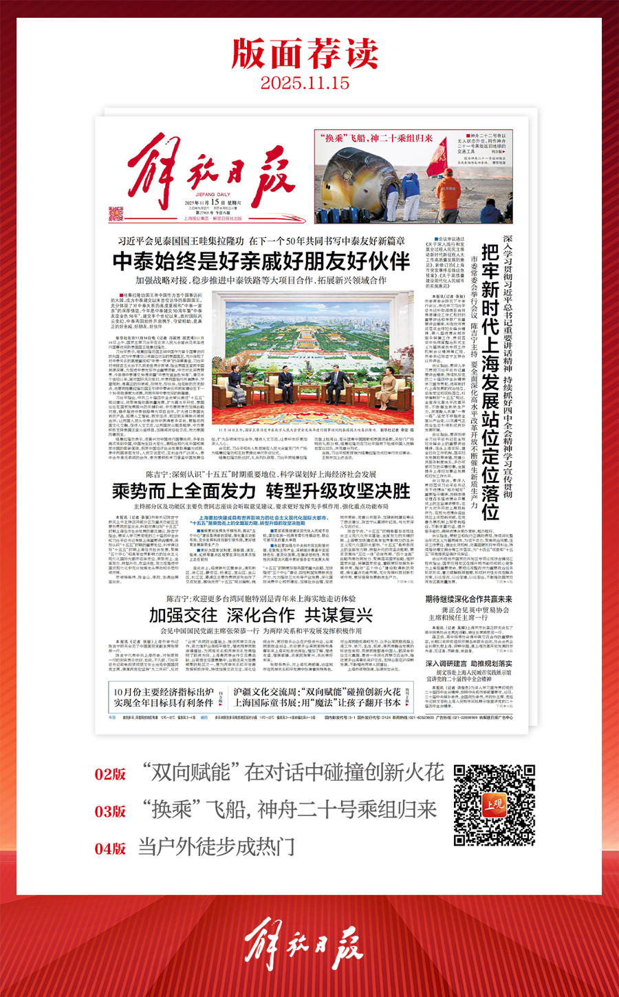 早上好!上观新闻『早读』来啦!2025年11月15日 星期六 农历九月廿六上海晴到多云,早晨局部地区有雾,12~20℃